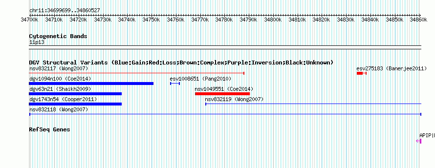 Outerchr11:34699699..34860527hg18UCSC Ensembl