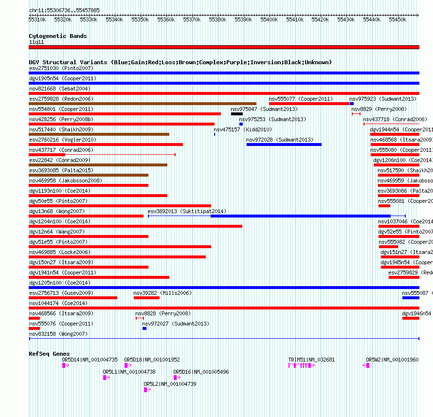 Variant DetailsVariant: nsv832158 | Internal ID | 16456027 | | Landmark | | | Location Information | | | Cytoband | 11q11 | | Allele length | | Assembly | Allele length | | hg38 | 151150 | | hg19 | 151150 | | hg18 | 151150 | | hg17 | 151150 |