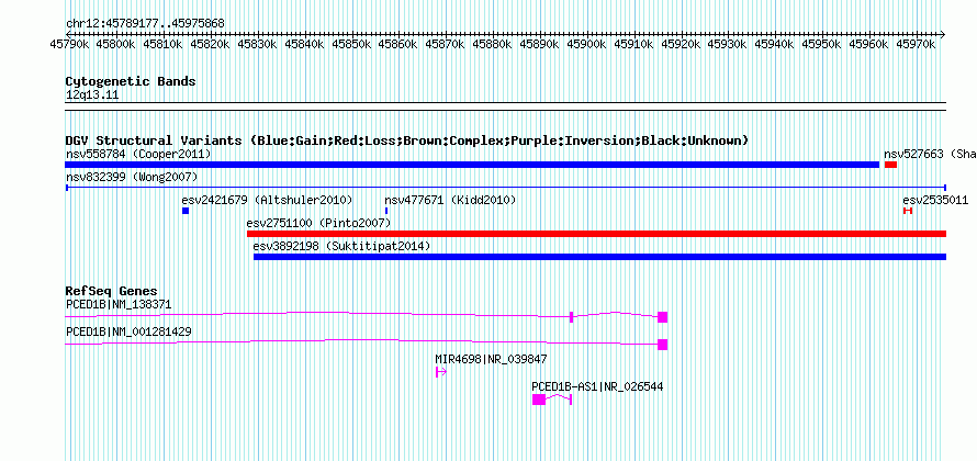 Variant DetailsVariant: nsv832399 Internal ID | 16109582 | Landmark | | Location Information | | Cytoband | 12q13.11 | Allele length | Assembly | Allele length | hg38 | 186692 | hg19 | 186692 | hg18 | 186692 | hg17 | 186692 |