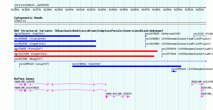 Variant DetailsVariant: nsv832588 | Internal ID | 16456457 | | Landmark | | | Location Information | | | Cytoband | 13q14.11 | | Allele length | | Assembly | Allele length | | hg38 | 176133 | | hg19 | 176133 | | hg18 | 176133 | | hg17 | 176133 |