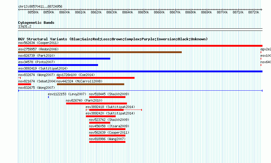 Outerchr13:88570411..88724956hg18UCSC Ensembl