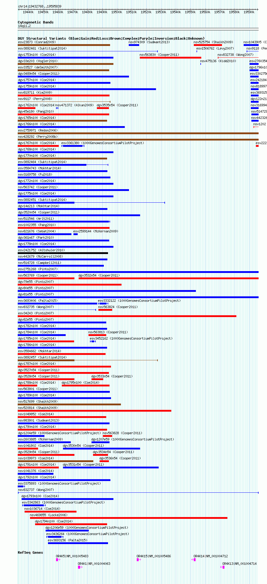 Variant DetailsVariant: nsv832737 | Internal ID | 16456606 | | Landmark | | | Location Information | | | Cytoband | 14q11.2 | | Allele length | | Assembly | Allele length | | hg38 | 163072 | | hg19 | 163072 | | hg18 | 163072 | | hg17 | 163072 |