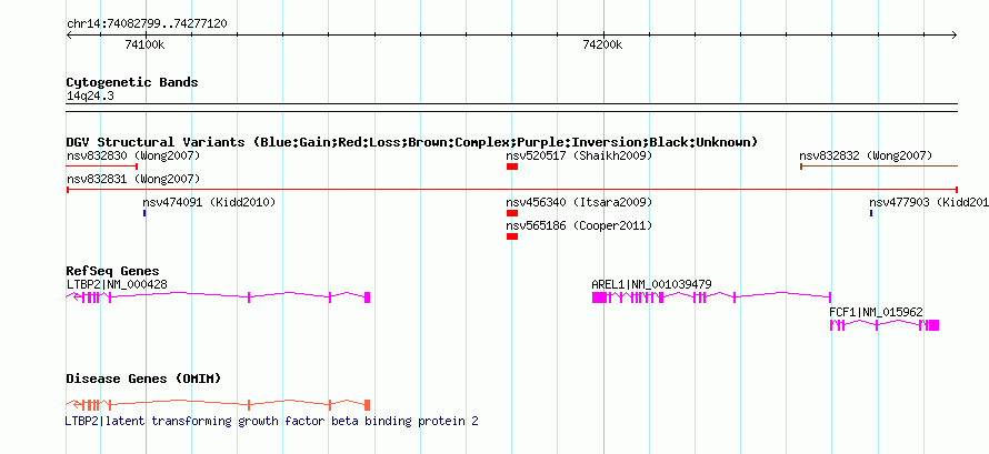 Variant DetailsVariant: nsv832831 | Internal ID | 16456700 | | Landmark | | | Location Information | | | Cytoband | 14q24.3 | | Allele length | | Assembly | Allele length | | hg38 | 194322 | | hg19 | 194322 | | hg18 | 194322 | | hg17 | 194322 |