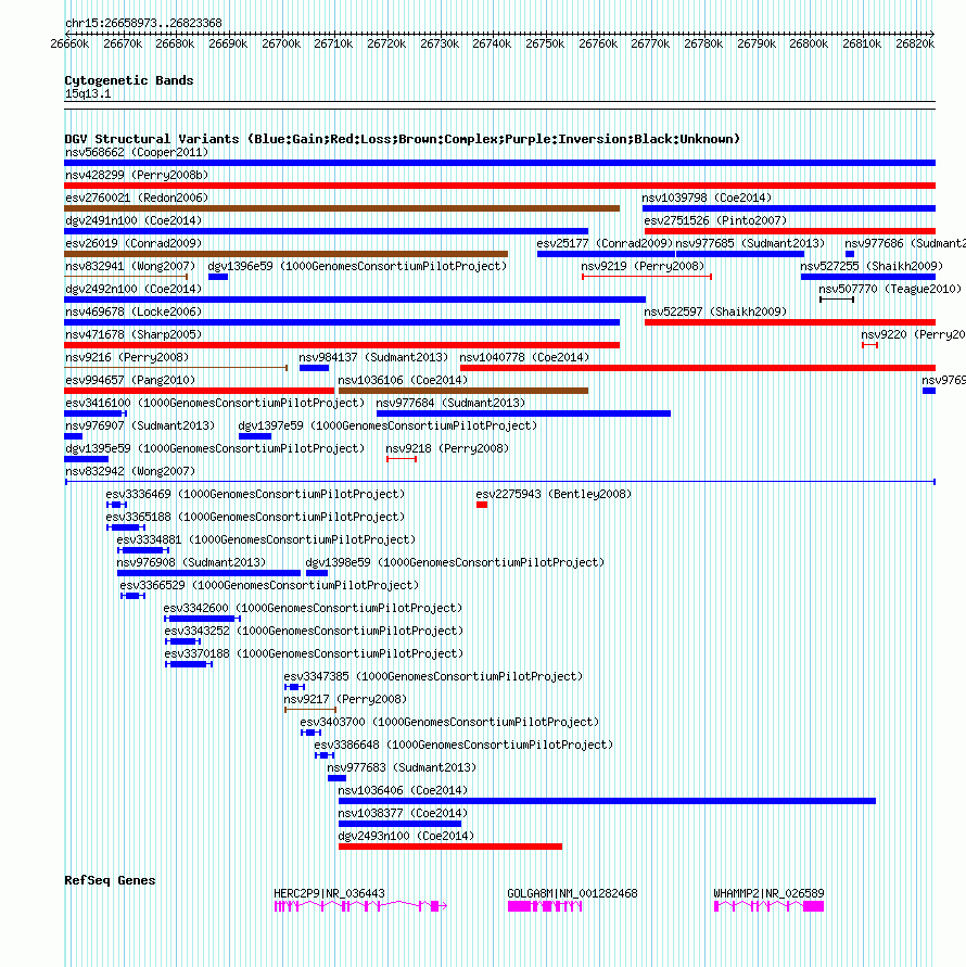 Variant DetailsVariant: nsv832942 | Internal ID | 16456811 | | Landmark | | | Location Information | | | Cytoband | 15q13.1 | | Allele length | | Assembly | Allele length | | hg38 | 164396 | | hg19 | 164396 | | hg18 | 164396 | | hg17 | 164396 |
