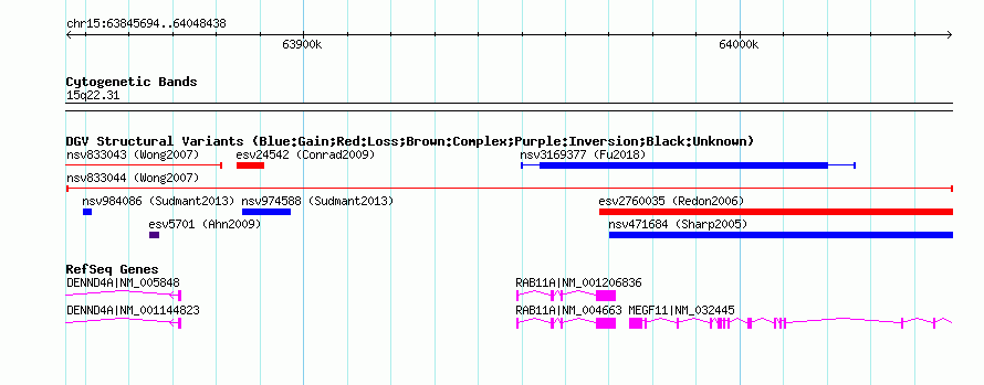 Variant DetailsVariant: nsv833044 | Internal ID | 16456913 | | Landmark | | | Location Information | | | Cytoband | 15q22.31 | | Allele length | | Assembly | Allele length | | hg38 | 202745 | | hg19 | 202745 | | hg18 | 202745 | | hg17 | 202745 |