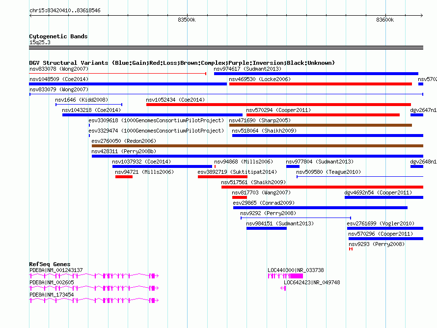 Variant DetailsVariant: nsv833079 | Internal ID | 16456948 | | Landmark | | | Location Information | | | Cytoband | 15q25.3 | | Allele length | | Assembly | Allele length | | hg38 | 198137 | | hg19 | 198137 | | hg18 | 198137 | | hg17 | 198137 |