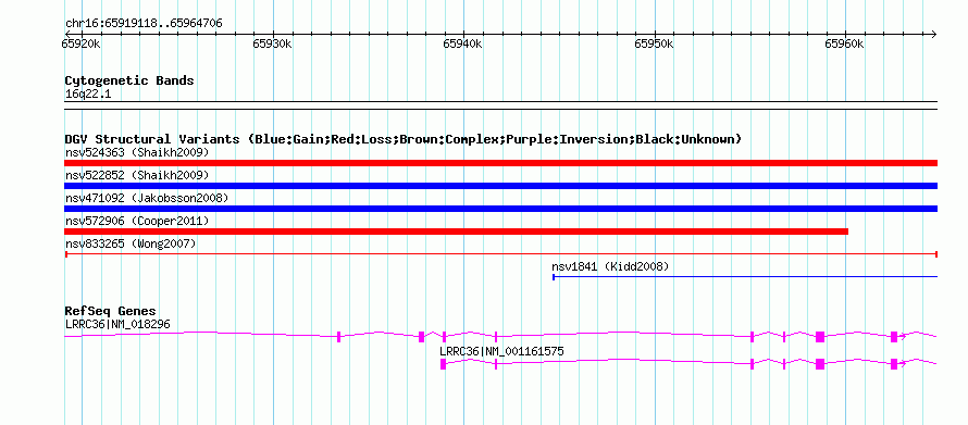 Outerchr16:65919118..65964706hg18UCSC Ensembl