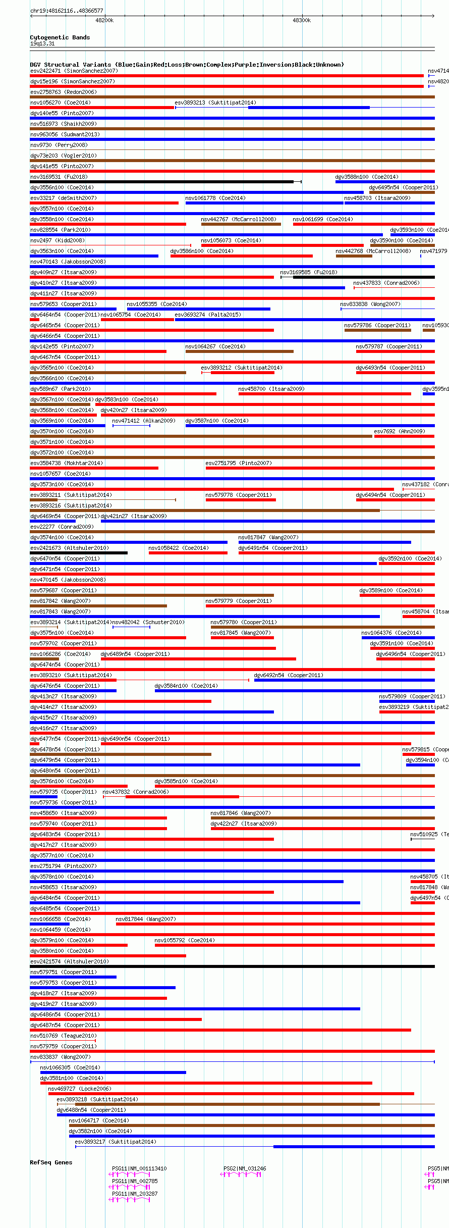 Variant DetailsVariant: nsv833837 | Internal ID | 16457706 | | Landmark | | | Location Information | | | Cytoband | 19q13.31 | | Allele length | | Assembly | Allele length | | hg38 | 204462 | | hg19 | 204462 | | hg18 | 204462 | | hg17 | 204462 |