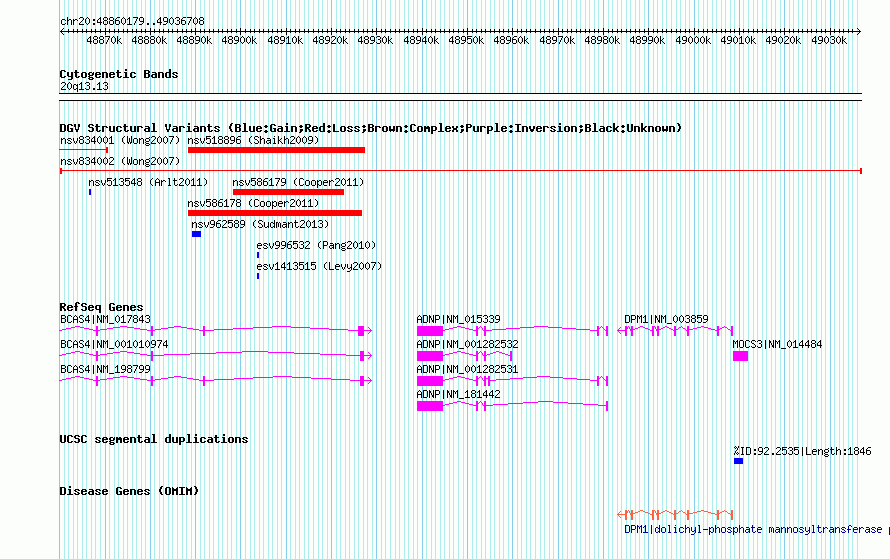 Variant DetailsVariant: nsv834002 | Internal ID | 16111185 | | Landmark | | | Location Information | | | Cytoband | 20q13.13 | | Allele length | | Assembly | Allele length | | hg38 | 176530 | | hg19 | 176530 | | hg18 | 176530 | | hg17 | 176530 |
