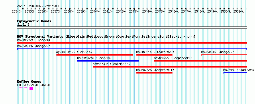 Outerchr21:25340087..25515908hg18UCSC Ensembl