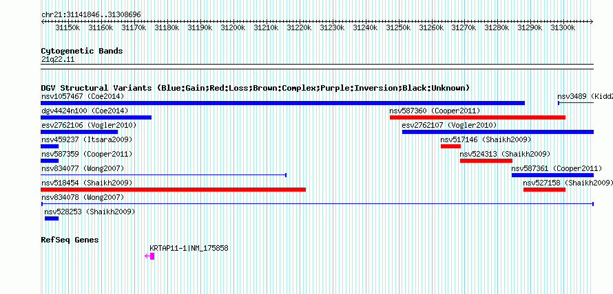 Outerchr21:31141846..31308696hg18UCSC Ensembl