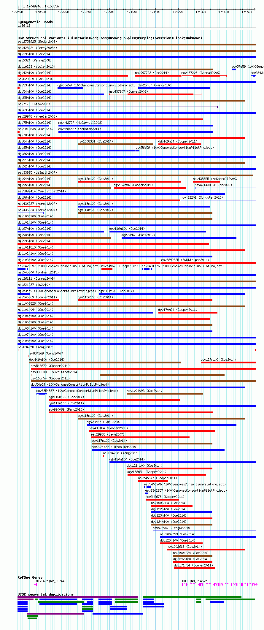 Variant DetailsVariant: nsv834258 | Internal ID | 16111441 | | Landmark | | | Location Information | | | Cytoband | 1p36.13 | | Allele length | | Assembly | Allele length | | hg38 | 103591 | | hg19 | 103591 | | hg18 | 103591 | | hg17 | 103591 |