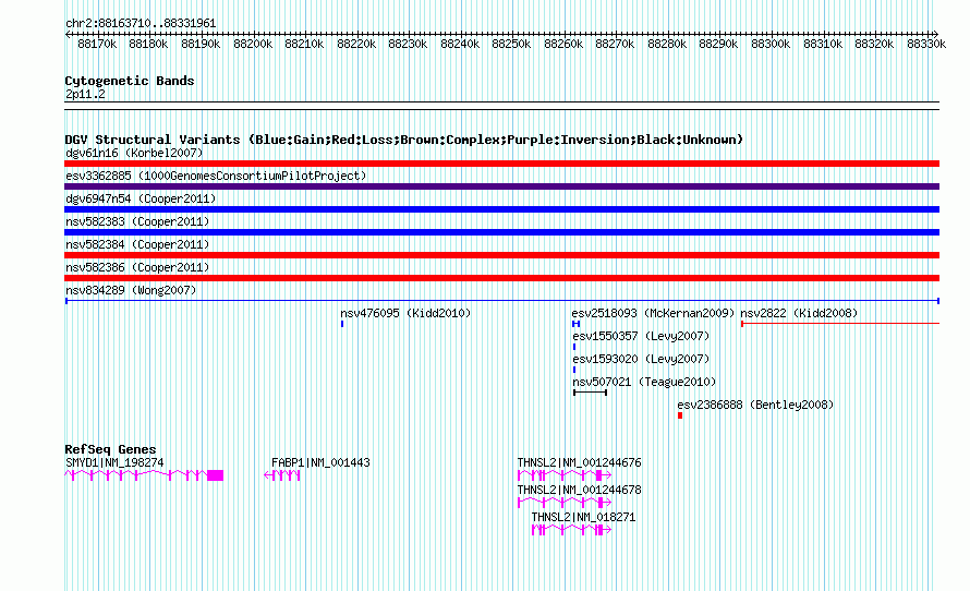 Variant DetailsVariant: nsv834289 | Internal ID | 16111472 | | Landmark | | | Location Information | | | Cytoband | 2p11.2 | | Allele length | | Assembly | Allele length | | hg38 | 168252 | | hg19 | 168252 | | hg18 | 168252 | | hg17 | 168252 |