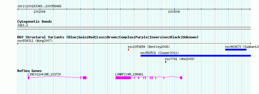 Variant DetailsVariant: nsv834311 | Internal ID | 16458180 | | Landmark | | | Location Information | | | Cytoband | 2q11.2 | | Allele length | | Assembly | Allele length | | hg38 | 173120 | | hg19 | 173120 | | hg18 | 173120 | | hg17 | 173120 |