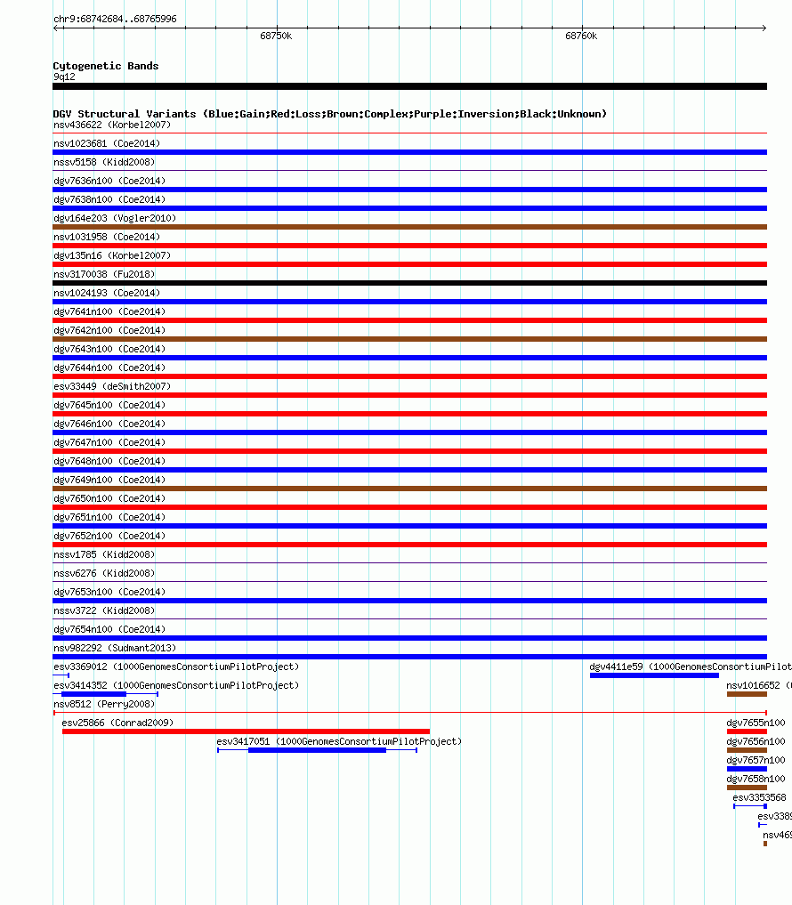 Variant DetailsVariant: nsv8512| Internal ID | 15846424 | | Landmark | | | Location Information | | | Cytoband | 9q12 | | Allele length | | Assembly | Allele length | | hg38 | 23313 | | hg19 | 23313 | | hg18 | 23313 | | hg17 | 23313 |