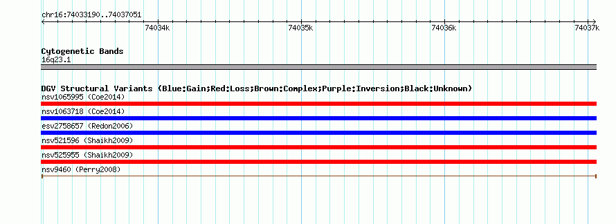 Variant DetailsVariant: nsv9460| Internal ID | 15847372 | | Landmark | | | Location Information | | | Cytoband | 16q23.1 | | Allele length | | Assembly | Allele length | | hg38 | 3862 | | hg19 | 3862 | | hg18 | 3862 | | hg17 | 3862 |
