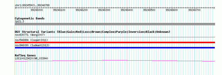 Variant DetailsVariant: nsv946090| Internal ID | 18592940 | | Landmark | | | Location Information | | | Cytoband | 1p21.3 | | Allele length | | Assembly | Allele length | | hg38 | 886 | | hg19 | 886 | | hg18 | 886 |
