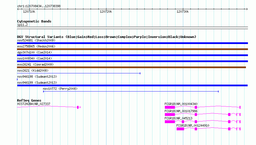 | | Variant Type | CNV duplication | | Copy Number | | | Allele State | | | Allele Origin | | | Probe Count | | | Validation Flag | | | Merged Status | M | | Merged Variants | | | Supporting Variants | nssv1785552, nssv1785555, nssv1785550, nssv1785553, nssv1785551, nssv1785556, nssv1785548, nssv1785557, nssv1785549, nssv1785554 | | Samples | HGDP01284, HGDP00665, HGDP00998, HGDP00521, HGDP00778, HGDP01307, HGDP00542, HGDP01029, HGDP00456, HGDP00927 | | Known Genes | FCGR1B, HIST2H2BA | | Method | Sequencing | | Analysis | lineage specific fixed duplications | | Platform | Not reported | | Comments | | | Reference | Sudmant_et_al_2013 | | Pubmed ID | 23825009 | | Accession Number(s) | nsv946199