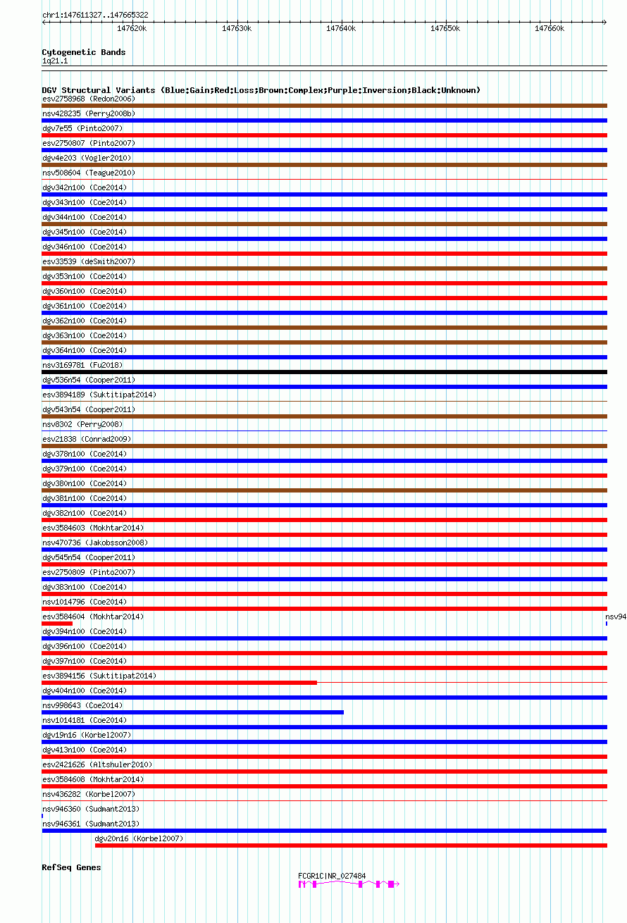 Variant DetailsVariant: nsv946361| Internal ID | 18593211 | | Landmark | | | Location Information | | | Cytoband | 1q21.1 | | Allele length | | Assembly | Allele length | | hg38 | 53986 | | hg19 | 53996 | | hg18 | 53996 |