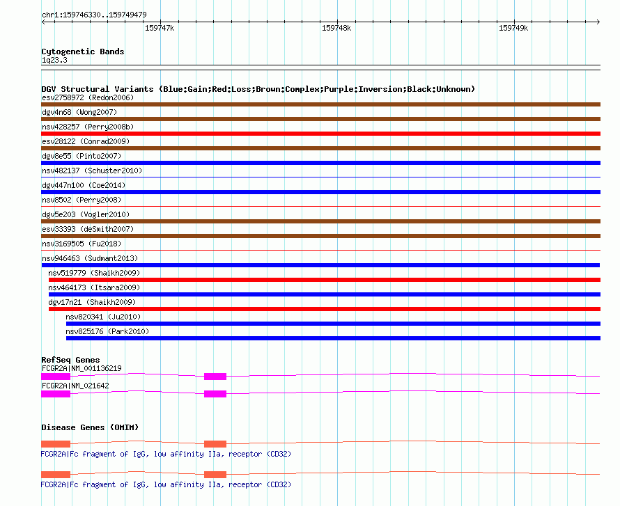 Variant DetailsVariant: nsv946463| Internal ID | 18593313 | | Landmark | | | Location Information | | | Cytoband | 1q23.3 | | Allele length | | Assembly | Allele length | | hg38 | 3150 | | hg19 | 3150 | | hg18 | 3150 |