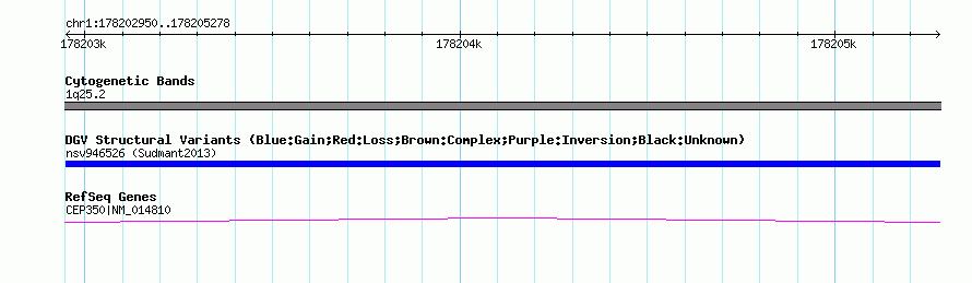 Variant DetailsVariant: nsv946526| Internal ID | 18593376 | | Landmark | | | Location Information | | | Cytoband | 1q25.2 | | Allele length | | Assembly | Allele length | | hg38 | 2329 | | hg19 | 2329 | | hg18 | 2329 |