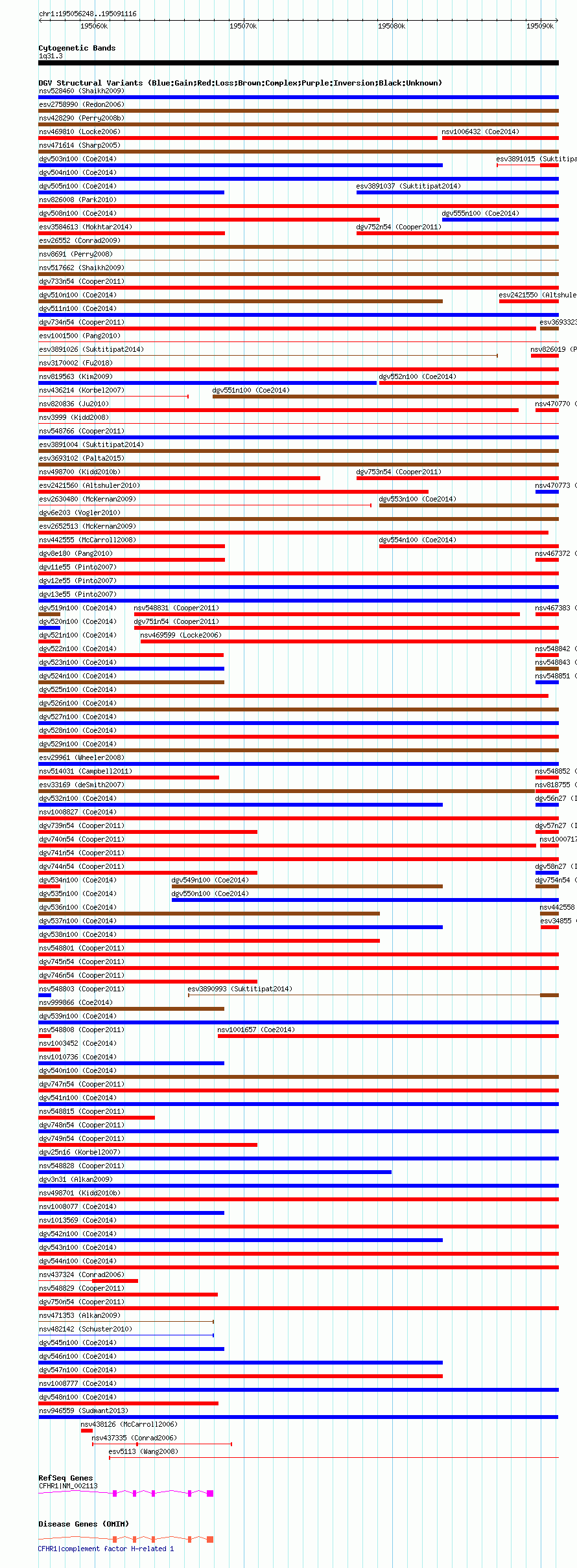Variant DetailsVariant: nsv946559| Internal ID | 18593409 | | Landmark | | | Location Information | | | Cytoband | 1q31.3 | | Allele length | | Assembly | Allele length | | hg38 | 34869 | | hg19 | 34869 | | hg18 | 34869 |