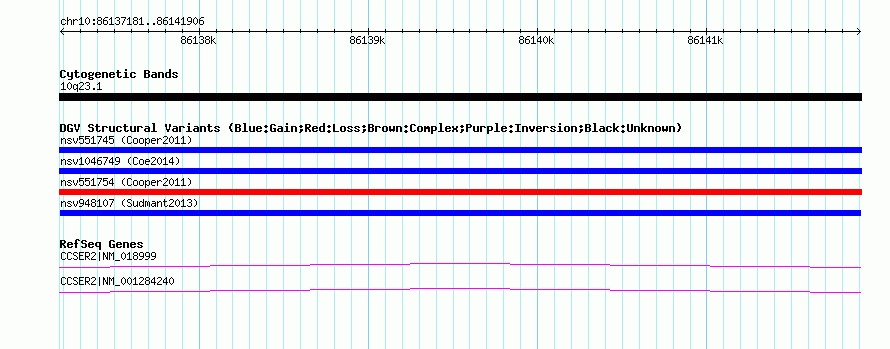 Variant DetailsVariant: nsv948107| Internal ID | 18594953 | | Landmark | | | Location Information | | | Cytoband | 10q23.1 | | Allele length | | Assembly | Allele length | | hg38 | 4726 | | hg19 | 4726 | | hg18 | 4726 |