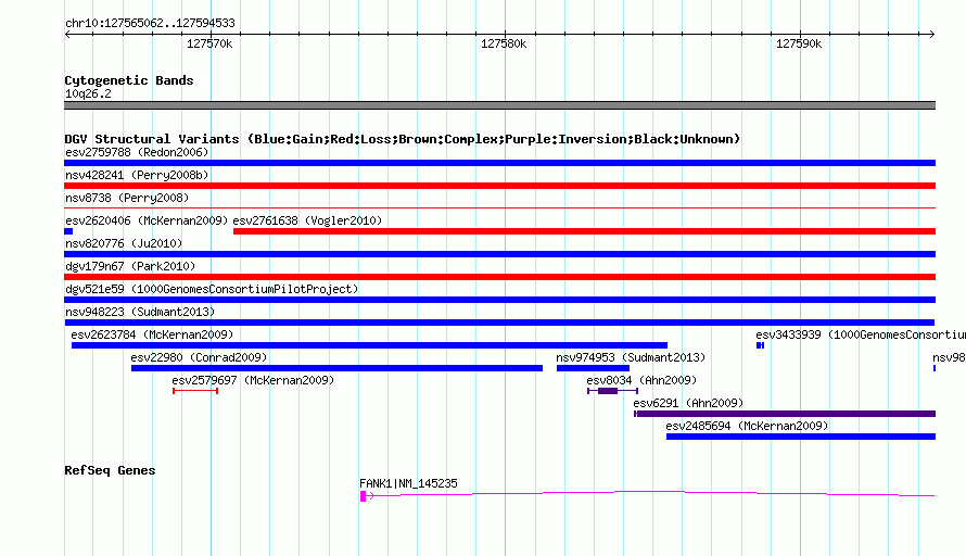 Variant DetailsVariant: nsv948223| Internal ID | 18595069 | | Landmark | | | Location Information | | | Cytoband | 10q26.2 | | Allele length | | Assembly | Allele length | | hg38 | 29472 | | hg19 | 29472 | | hg18 | 29472 |