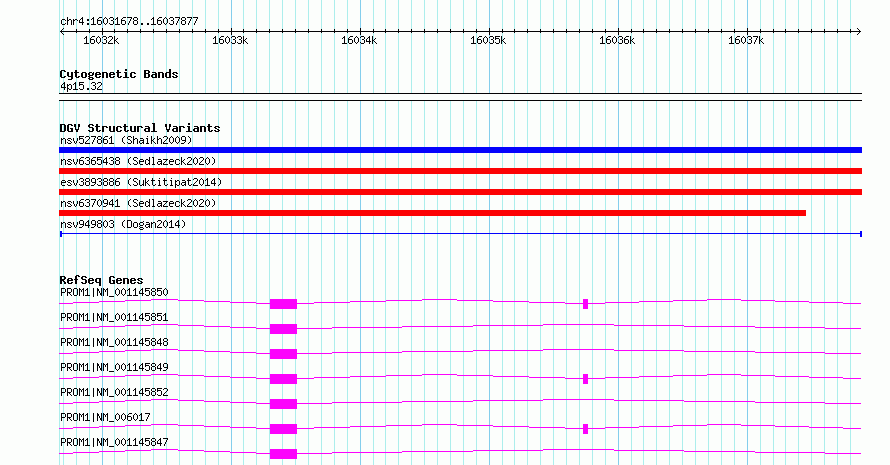 Variant DetailsVariant: nsv949803| Internal ID | 17298677 | | Landmark | | | Location Information | | | Cytoband | 4p15.32 | | Allele length | | Assembly | Allele length | | hg38 | 6200 | | hg19 | 6200 |