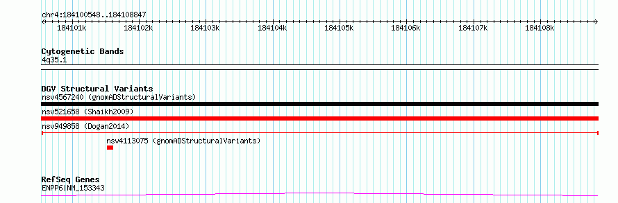 Variant DetailsVariant: nsv949858| Internal ID | 16952045 | | Landmark | | | Location Information | | | Cytoband | 4q35.1 | | Allele length | | Assembly | Allele length | | hg38 | 8300 | | hg19 | 8300 |