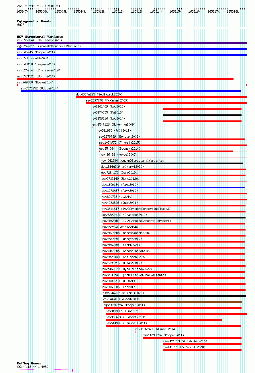 Variant DetailsVariant: nsv949888| Internal ID | 17298762 | | Landmark | | | Location Information | | | Cytoband | 6q27 | | Allele length | | Assembly | Allele length | | hg38 | 12000 | | hg19 | 12000 |