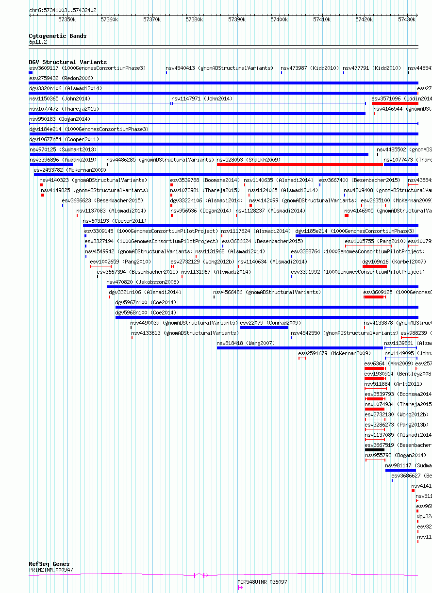 Variant DetailsVariant: nsv950183Internal ID | 16952370 | Landmark | | Location Information | | Cytoband | 6p11.2 | Allele length | Assembly | Allele length | hg38 | 91400 | hg19 | 91400 |