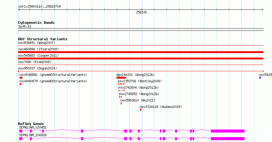 Variant DetailsVariant: nsv950337| Internal ID | 17299211 | | Landmark | | | Location Information | | | Cytoband | 1p36.11 | | Allele length | | Assembly | Allele length | | hg38 | 19600 | | hg19 | 19600 |
