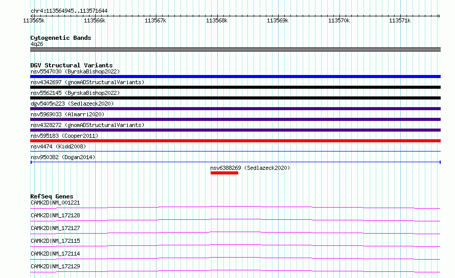 Variant DetailsVariant: nsv950382| Internal ID | 17299256 | | Landmark | | | Location Information | | | Cytoband | 4q26 | | Allele length | | Assembly | Allele length | | hg38 | 6700 | | hg19 | 6700 |
