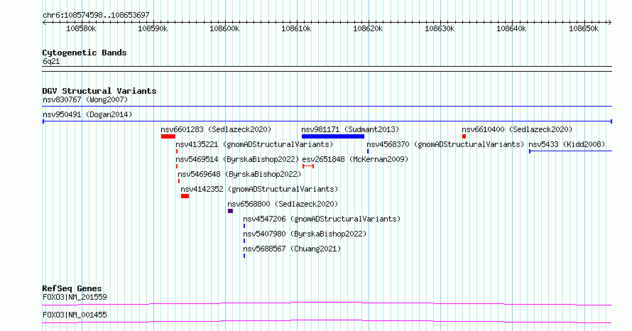 Variant DetailsVariant: nsv950491| Internal ID | 17299365 | | Landmark | | | Location Information | | | Cytoband | 6q21 | | Allele length | | Assembly | Allele length | | hg38 | 79100 | | hg19 | 79100 |