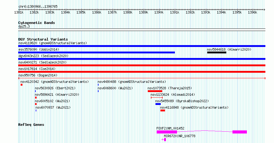 Variant DetailsVariant: nsv950756| Internal ID | 17299630 | | Landmark | | | Location Information | | | Cytoband | 6p25.3 | | Allele length | | Assembly | Allele length | | hg38 | 15800 | | hg19 | 15800 |