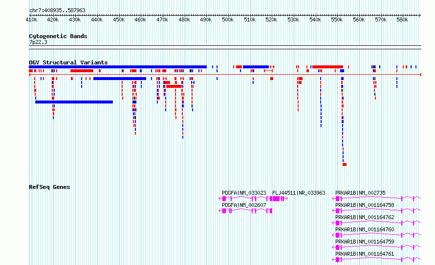| Variant Type | CNV deletion | Copy Number | | Allele State | | Allele Origin | | Probe Count | | Validation Flag | | Merged Status | M | Merged Variants | | Supporting Variants | nssv2997586 | Samples | BILGI_BIOE | Known Genes | FLJ44511, PDGFA, PRKAR1B | Method | Sequencing | Analysis | | Platform | Illumina HiSeq 2000 | Comments | | Reference | Dogan_et_al_2014 | Pubmed ID | 24416366 | Accession Number(s) | nsv950782