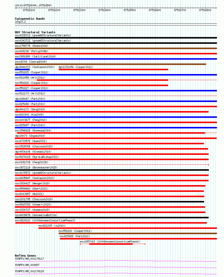 Variant DetailsVariant: nsv950988| Internal ID | 17299862 | | Landmark | | | Location Information | | | Cytoband | 10q23.2 | | Allele length | | Assembly | Allele length | | hg38 | 800 | | hg19 | 800 |