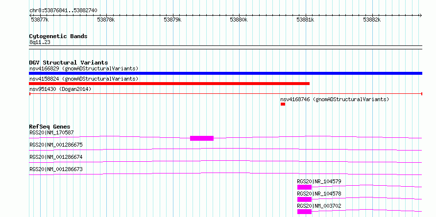 Variant DetailsVariant: nsv951430| Internal ID | 16953617 | | Landmark | | | Location Information | | | Cytoband | 8q11.23 | | Allele length | | Assembly | Allele length | | hg38 | 5900 | | hg19 | 5900 |