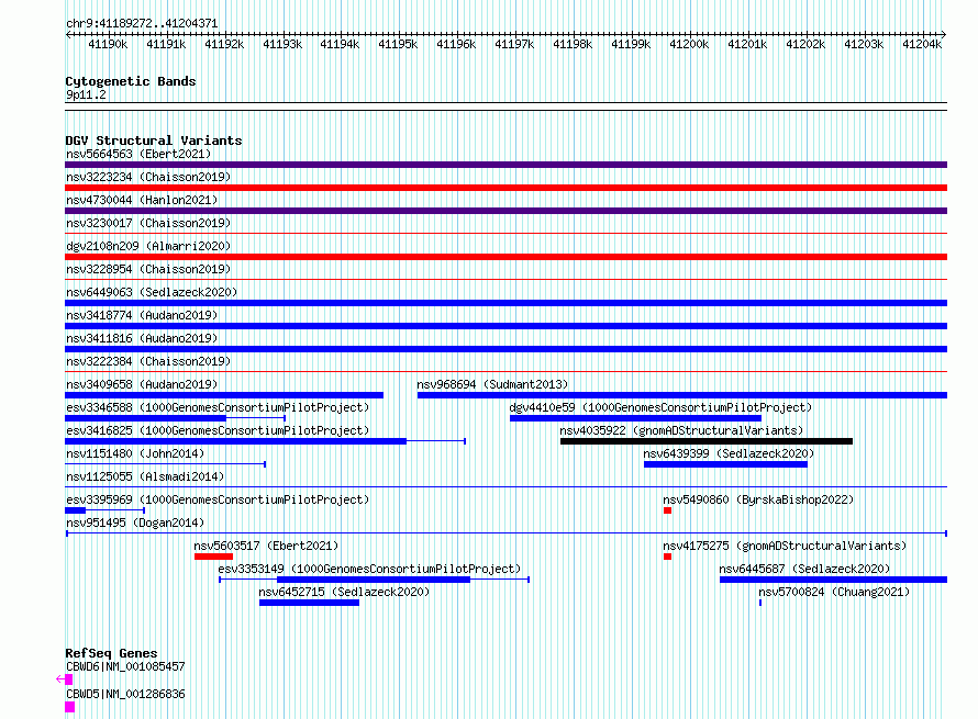 Variant DetailsVariant: nsv951495| Internal ID | 17300369 | | Landmark | | | Location Information | | | Cytoband | 9q21.11 | | Allele length | | Assembly | Allele length | | hg38 | 15100 | | hg19 | 15100 |