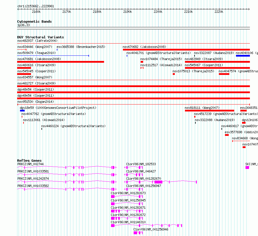 Variant DetailsVariant: nsv951530| Internal ID | 16953717 | | Landmark | | | Location Information | | | Cytoband | 1p36.33 | | Allele length | | Assembly | Allele length | | hg38 | 76300 | | hg19 | 76300 |