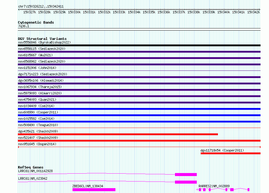 Variant DetailsVariant: nsv951645| Internal ID | 17300519 | | Landmark | | | Location Information | | | Cytoband | 7q36.1 | | Allele length | | Assembly | Allele length | | hg38 | 16200 | | hg19 | 16200 |