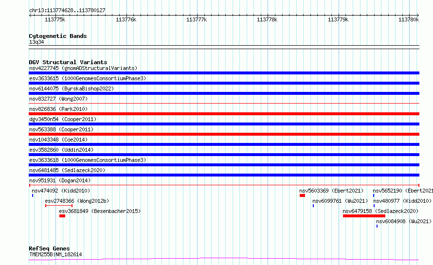 Variant DetailsVariant: nsv951931| Internal ID | 17300805 | | Landmark | | | Location Information | | | Cytoband | 13q34 | | Allele length | | Assembly | Allele length | | hg38 | 5500 | | hg19 | 5500 |