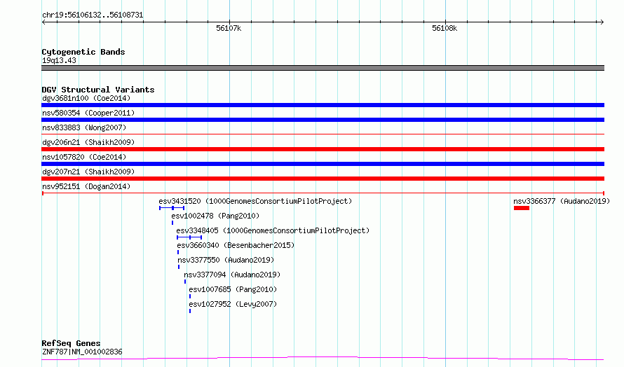 Variant DetailsVariant: nsv952151| Internal ID | 16954338 | | Landmark | | | Location Information | | | Cytoband | 19q13.43 | | Allele length | | Assembly | Allele length | | hg38 | 2600 | | hg19 | 2600 |