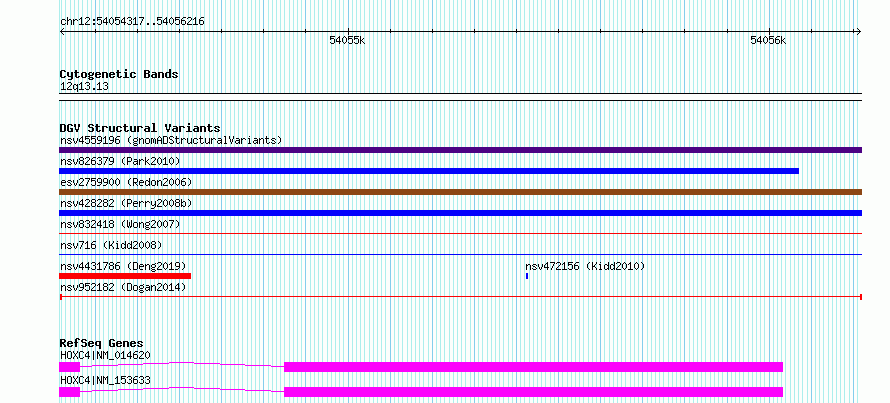 Variant DetailsVariant: nsv952182| Internal ID | 17301056 | | Landmark | | | Location Information | | | Cytoband | 12q13.13 | | Allele length | | Assembly | Allele length | | hg38 | 1900 | | hg19 | 1900 |