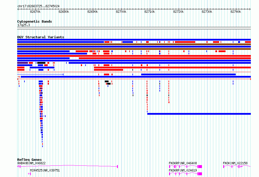 Variant DetailsVariant: nsv952395| Internal ID | 17301269 | | Landmark | | | Location Information | | | Cytoband | 17q25.3 | | Allele length | | Assembly | Allele length | | hg38 | 81300 | | hg19 | 81300 |