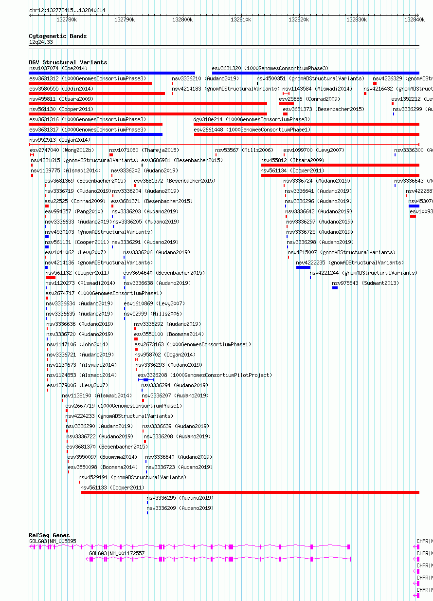| Variant Type | CNV deletion | Copy Number | | Allele State | | Allele Origin | | Probe Count | | Validation Flag | | Merged Status | M | Merged Variants | | Supporting Variants | nssv2997388 | Samples | BILGI_BIOE | Known Genes | CHFR, GOLGA3 | Method | Sequencing | Analysis | | Platform | Illumina HiSeq 2000 | Comments | | Reference | Dogan_et_al_2014 | Pubmed ID | 24416366 | Accession Number(s) | nsv952513