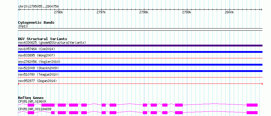 Variant DetailsVariant: nsv952977| Internal ID | 16955164 | | Landmark | | | Location Information | | | Cytoband | 20p13 | | Allele length | | Assembly | Allele length | | hg38 | 5700 | | hg19 | 5700 |