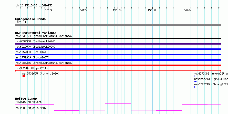 Variant DetailsVariant: nsv952989| Internal ID | 17301863 | | Landmark | | | Location Information | | | Cytoband | 20p12.1 | | Allele length | | Assembly | Allele length | | hg38 | 5900 | | hg19 | 5900 |