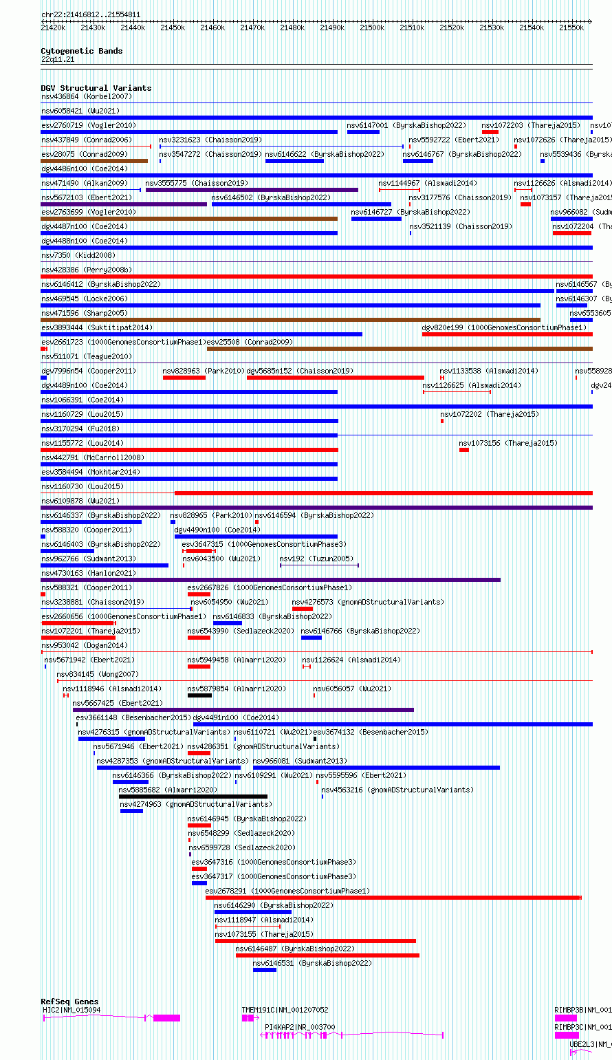 Variant DetailsVariant: nsv953042| Internal ID | 17301916 | | Landmark | | | Location Information | | | Cytoband | 22q11.21 | | Allele length | | Assembly | Allele length | | hg38 | 138000 | | hg19 | 138000 |